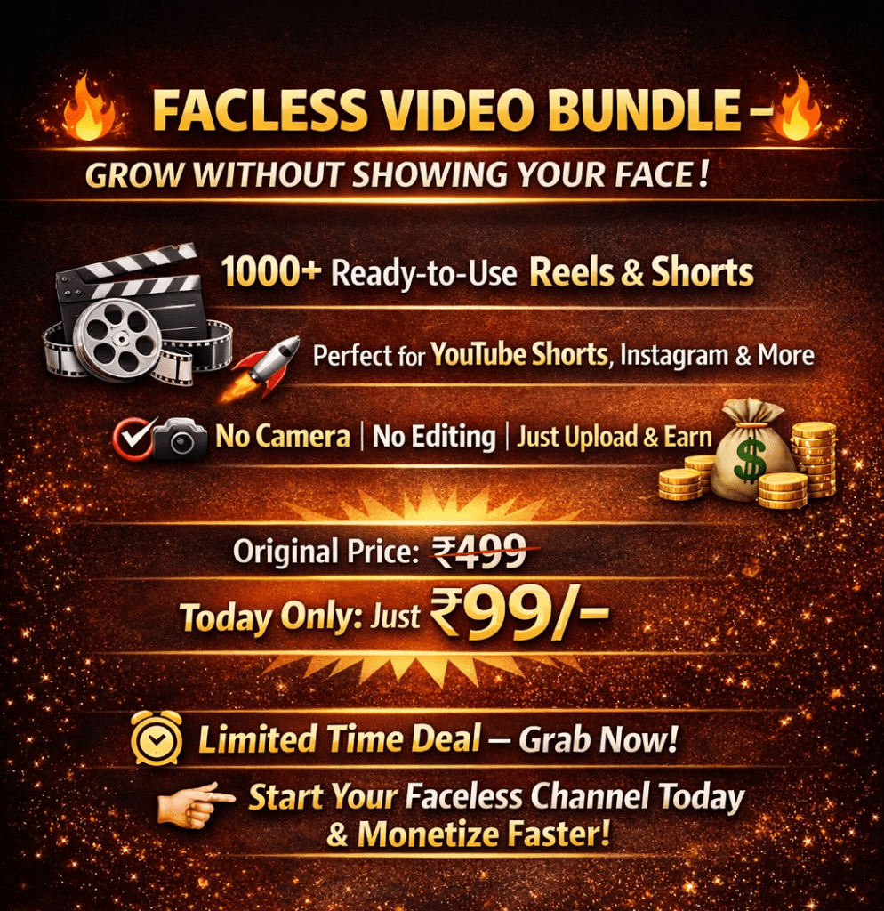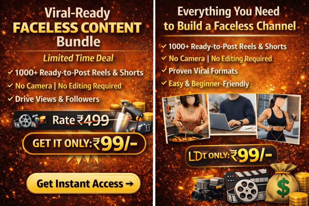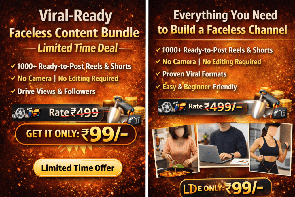 “This faceless video bundle saved me so much time. I started posting daily and my views increased within a week. Totally worth ₹99/-“